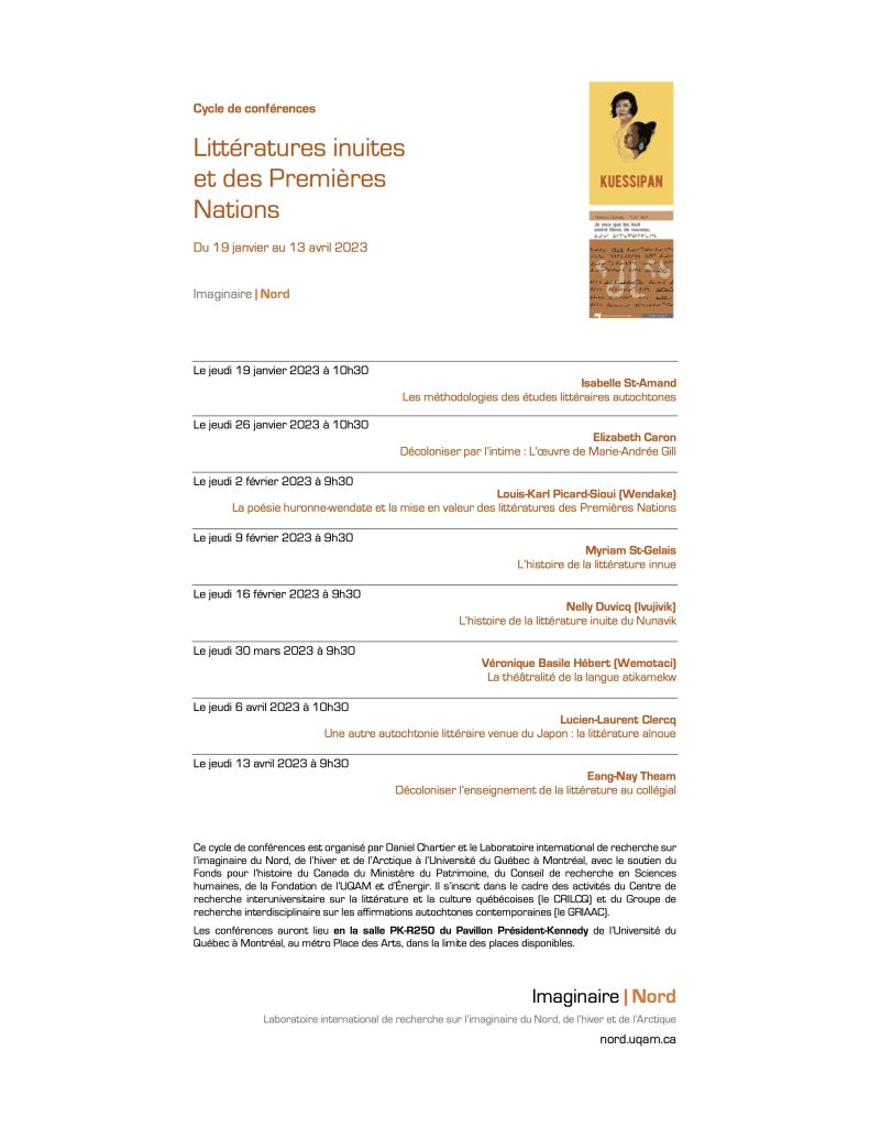 Du 19 janvier au 13 avril 2023 | Cycle de conférences – Littératures inuites et des Premières Nations